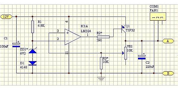 只要調整R2這個可變電阻就能改變輸出電壓進而控制風扇轉速。