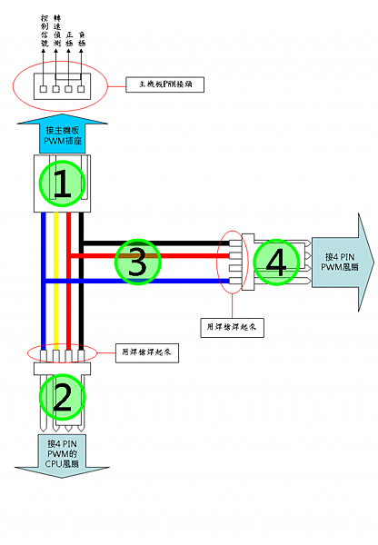 要偵測轉速的風扇就接到上圖的2位置才能偵測到風扇轉速,4的部分可以並聯多個風扇插座,