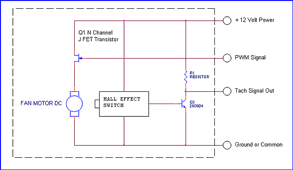 4線式則是比3線式風扇在馬達線圈前面又多了一個MOSFET做為開關,可以接受PWM訊號開關風扇,