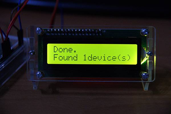 本程式將I2C掃描結果輸出到I2C 1602A LCD上
